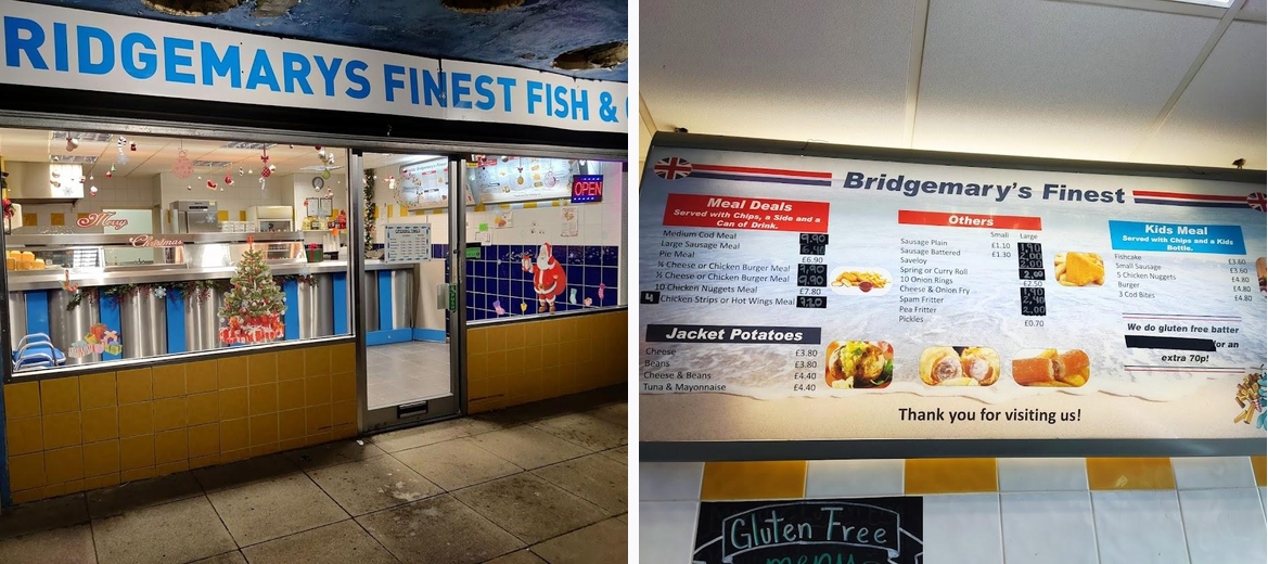 Welcome to Bridgemary's Finest Fish & Chips, where we pride ourselves on serving the freshest, highest quality fish and chips in Gosport. Located at 194 Nobes Ave, our casual eatery offers a welcoming atmosphere for families and friends alike. Enjoy a quick bite or relax with our dine-in options, all while experiencing exceptional service. Choose from our delectable menu, featuring gluten-free and vegetarian choices, perfect for any appetite. With convenient takeaway and delivery services, as well as a wheelchair-accessible environment, we cater to everyone. Join us for lunch or dinner and savor the taste of perfection in every crispy bite!One standout feature of Bridgemary's is its unbeatable fish and chips. Diners rave about the freshly cooked fish, particularly the Cod, highlighting its generous cuts. Many return for their chips, often described as the best in years, perfectly seasoned and crispy. Friendly, chatty staff enhance the dining experience, making guests feel at home—something that’s often mentioned in reviews. Customers also appreciate the glowing cleanliness of the establishment, making it not just a delicious choice, but a pleasant one too.